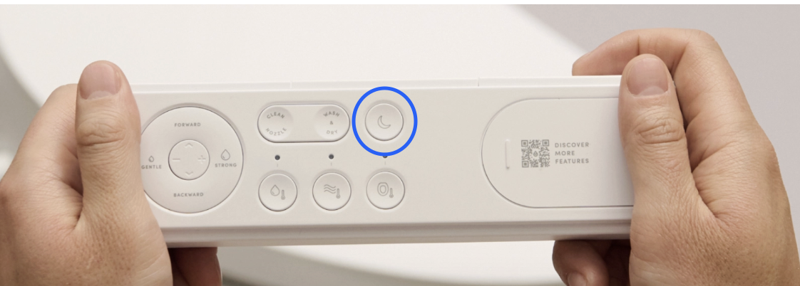 To turn off the night light, press and hold the button with the half-moon icon on the remote for 5 seconds. The unit will beep twice to confirm the light is off. To turn the night light back on, press and hold the same button again; the unit will beep once when the light is activated.