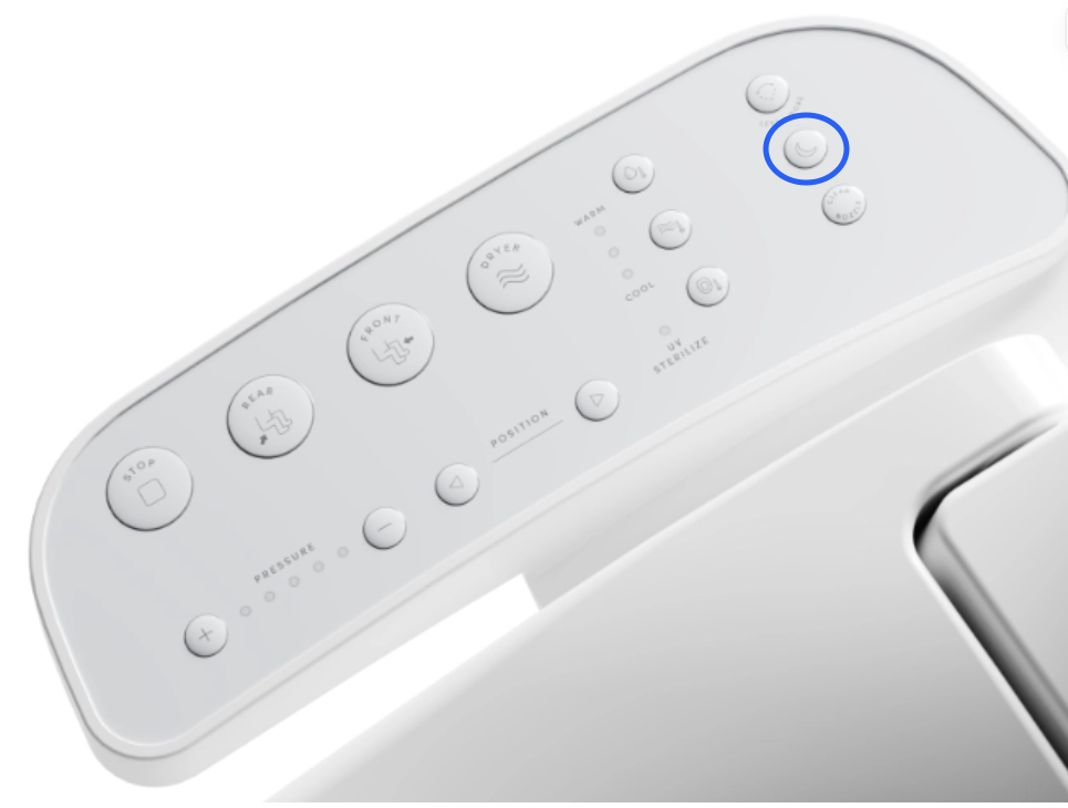 To turn off the night light, press and hold the button with the half-moon icon on the side panel for 5 seconds. The unit will beep twice to confirm the light is off. To turn the night light back on, press and hold the same button again; the unit will beep once when the light is activated.