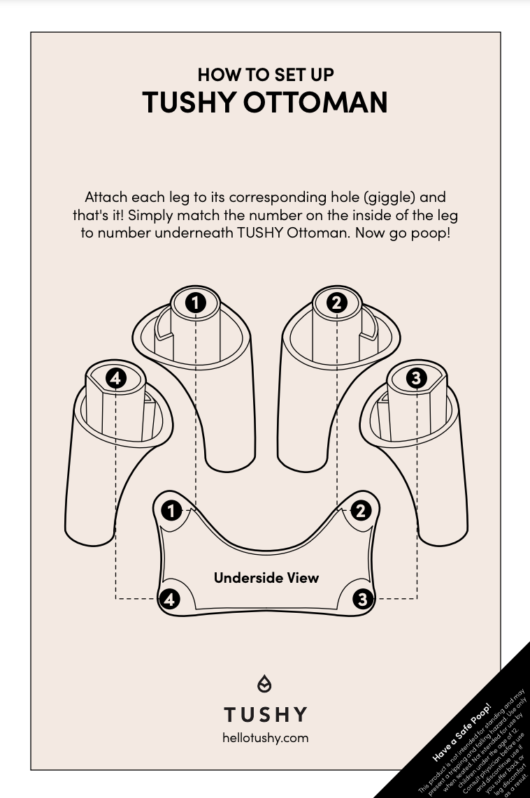 ¿Necesitas cambiar las patas de tu Ottoman TUSHY? ¡Fácil! Solo sigue la hoja de instrucciones que venía con tu Ottoman.